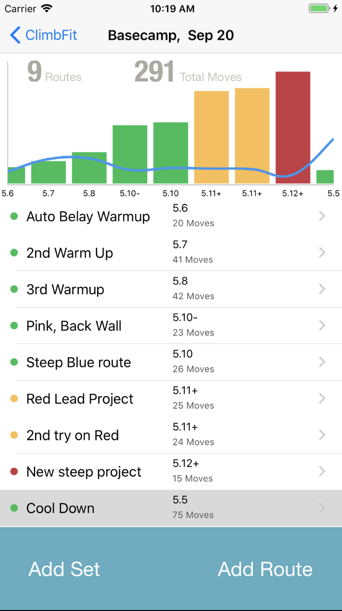 On November 10, 2016, ClimbFit launched in the Apple App Store. ClimbFit is designed to be a simple and intuitive way to track your rockclimbing workouts. You can track grade and number of moves for each route or boulder problem. Future updates will include the ability to track Campus and System board sessions.
